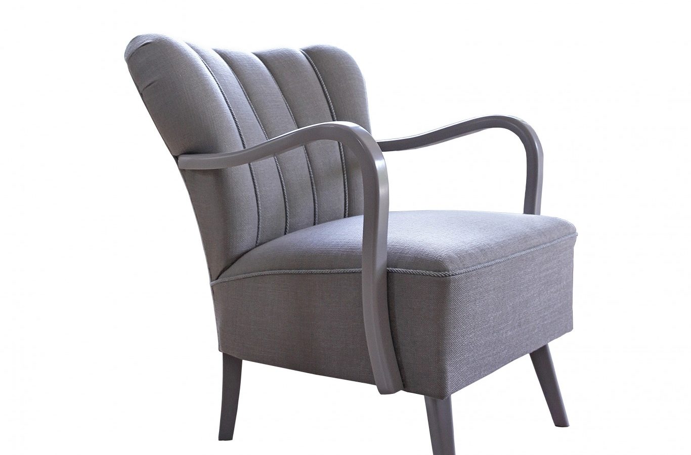 Tapicerka: siedzisko na sznurowanych sprężynach i pasach, wyściółka z końskiego włosia, oparcie na pasach, stelaż bukowy lakierowany emalią o podwyższonej odporności, tkanina obiciowa z formułą Aqua Clean.